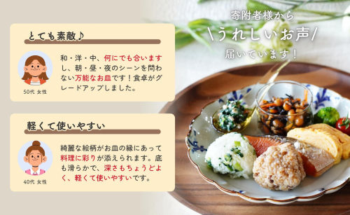 お料理を引き立たせてくれる柄は、手描きの温かみを大切に一筆一筆心を込めて描いております。