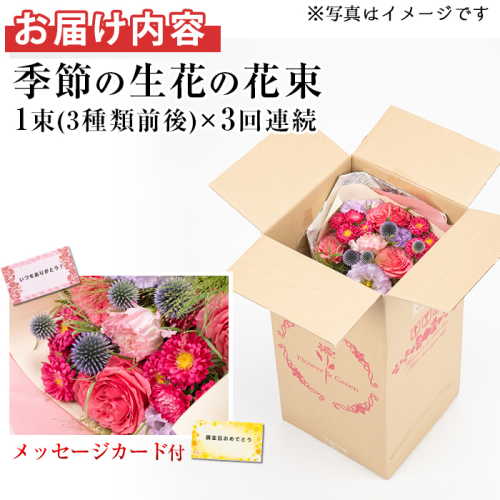 【0325904b】<定期便・全3回(連続)>季節の生花の花束ギフト(3種類前後・メッセージカード付×3回)花 花束 フラワー 贈り物 贈答【東串良物産館ルピノンの里】