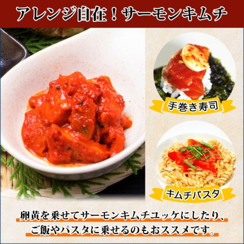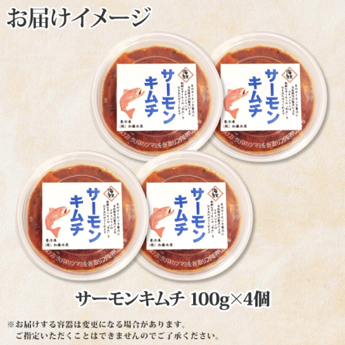 - 【年内配送 12月20日まで受付】3205. サーモンキムチ 100g×4個 鮭 キムチ 生食可 サーモン 海鮮 丼 無添加 ピリ辛 コチュジャン 漬け おかず ご飯のお供 おつまみ 酒の肴 送料無料 北海道 弟子屈町
