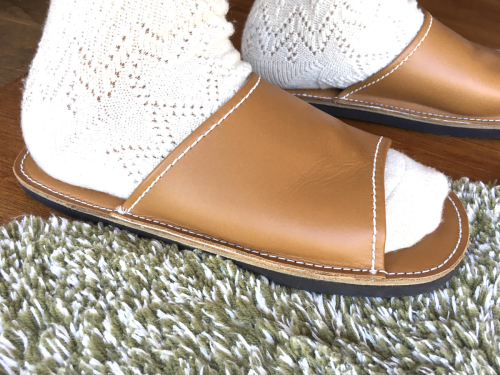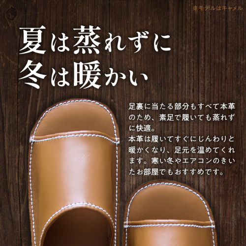 熟練の靴職人が本革で作った、夏は蒸れずに冬は暖かいシンプルなスリッパです。