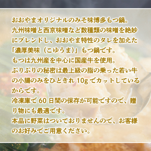 - もつ鍋 おおやま 定期便 博多もつ鍋 みそ味 3人前 3回 総計9人前 [博多もつ鍋おおやま 福岡県 宇美町 um40azo940010] モツ鍋 もつ鍋セット モツ鍋セット セット もつなべ 福岡 博多 味噌 ミソ