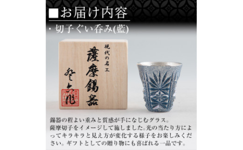 C0-107 薩摩錫器 切子ぐい呑み(藍)【薩摩錫器工芸館】 365443 - 鹿児島県霧島市