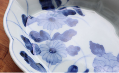 - 有田焼 hanabishi 花絵向付 2枚セット【まるふくオリジナル】食器 和食器 器 うつわ 皿 取皿 盛皿 刺身皿 セット ペア 花 染付 手描き 青 ブルー 電子レンジ対応 A35-368