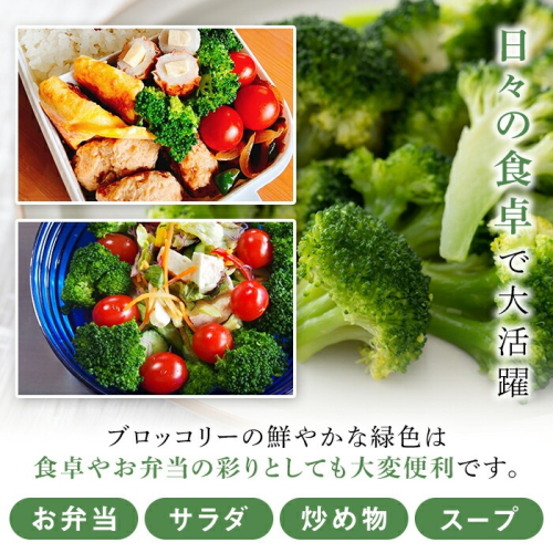 グッドフィールドの栽培したブロッコリーを、朝収穫し、新鮮なうち使いやすいサイズにカットしてその日のうちに冷凍しました。 ご家庭で使いやすいように、約250gずつの小分け包装になっております。 野菜が少しほしいとき、足りないときにに大活躍します。 ブロッコリーの鮮やかな緑色は食卓やお弁当の彩りとしても大変便利です。 合同会社グッドフィールドでは、野菜や柑橘類、お米などを栽培しています。障害のある方々を採用し、農作業に従事してもらう農福連携に取り組んでいます。 ぜひとも、ご賞味ください。 保存方法:冷凍 凍結前加熱の有無:完全には加熱してありません 加熱調理の必要性:加熱してお召し上がりください 地産理由:阿久根市内で生産されるブロッコリーを阿久根市内でカット・冷凍しているため
