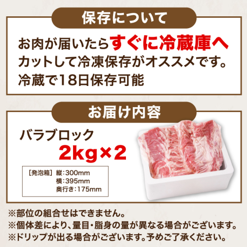 山形県庄内SPF豚 最上川ポークバラブロック 4kg(2kg×2)国産 豚肉 冷蔵便