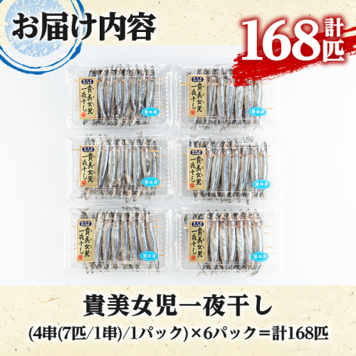 • 貴美女児一夜干し(計168匹・28匹×6パック)国産 干物 ひもの キビナゴ きびなご 魚介 乾物 おつまみ おかず【マルフク川畑水産】akn029-11