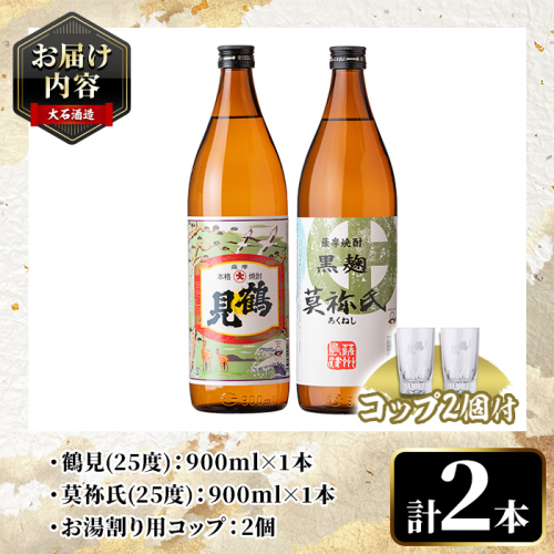 鹿児島本格芋焼酎!「鶴見・莫祢氏」乾杯セット(各900ml・計2本+お湯割り用コップ2個) 国産 芋 鹿児島県産 酒 焼酎 芋焼酎 アルコール 飲み比べ 【大石酒造】akn038-07 375207 - 鹿児島県阿久根市