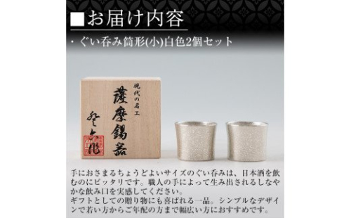 B0-194 《訳あり》薩摩錫器 ぐい呑み筒形(小)白色2個セット【薩摩錫器工芸館】 383135 - 鹿児島県霧島市