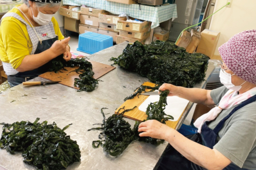 塩蔵わかめの「塩蔵」というのはわかめの保存性を高めるため、生わかめを湯通しして脱水をし、塩をまぶすという何十年も続く技法です。
