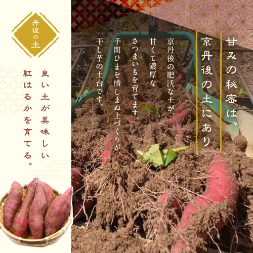 京都北部に位置する京丹後の自然豊かな国営開発農地で育った紅はるかは、昼夜の寒暖の差で甘みをじっくり蓄え、きめの細かいさつまいも(紅はるか)です。