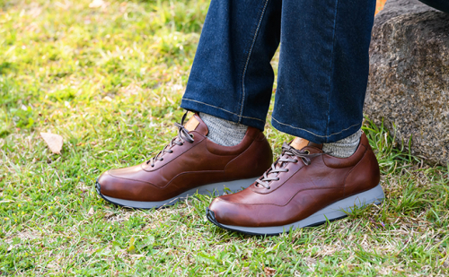 『独特な風合いの馬革と高性能なビブラムソールを使用したタウンカジュアルシューズ』