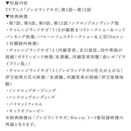 ※特典映像は「ゾンビランドサガ」Blu-ray 1~3巻収録映像の再録となります。