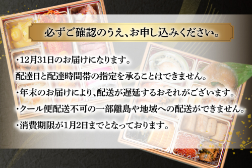 発送の直前に仕上げられる品々がふんだんに詰め込まれた自慢のおせちを、ぜひご賞味ください。