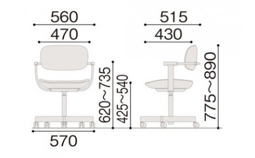 【サイズ】W560(脚:570mm)×D515×H775~890mm(SH425~540mm)