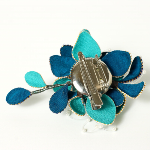 シルクコサージュ!(ブルー)着物などの和装・洋装共に使えます。髪飾りコサージュとしても!