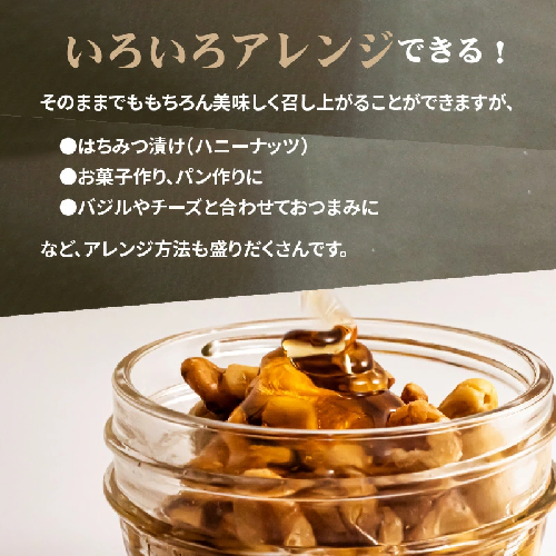 ※品質維持を心がけておりますが、農作物ですので天候などの影響により、1粒当たりのナッツの大きさや重量が前後することがございます。