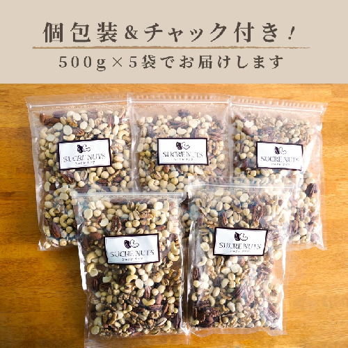 - 厳選 7種 無塩ミックスナッツ 2.5kg(500g×5袋)油不使用 H059-143