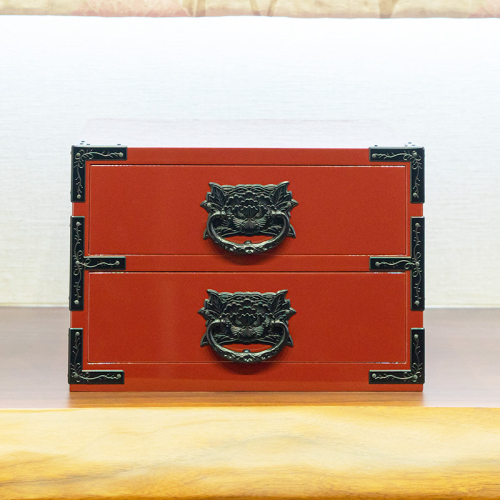 • 仙台箪笥 二ツ抽小箪笥 朱色漆塗り