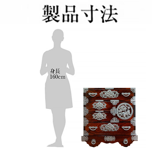 • 【彫金手打金具】仙台箪笥 中型車箪笥 ≪牡丹・唐獅子≫ 拭き漆塗り (申込書返送後、3ヶ月~8ヶ月程度でお届け)