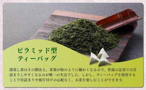 当店の特上深蒸し茶ティーバッグは、発売以来、多くのお客様にご愛用頂いている人気商品です。ティーバッグで本格的なお茶の味を楽しみたい方にぜひお勧めのお茶です。特上深蒸し粉茶を使用し、独自の火入技術で香ばしい甘みと香りを引き出して仕上げます。冷やして淹れても、熱く淹れてもおいしい手軽で便利なティーバッグをお試し下さい。