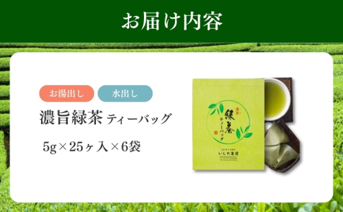 - 濃旨緑茶 ティーバッグ 6袋 (5g×25ヶ入×6) セット 詰め合わせ 緑茶 水出し緑茶 お茶 茶 日本茶 深蒸し茶 茶葉 静岡茶 煎茶 お茶っぱ 粉茶 静岡のお茶 飲料 飲み物 ドリンク ティーバック 静岡 静岡県 森町