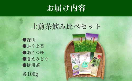 上煎茶飲み比べセット(深山・ふくよ香・アサツユ・サエミドリ・掛川茶 各100g) 飲料類 お茶 茶葉 詰め合わせ  39459 - 静岡県森町