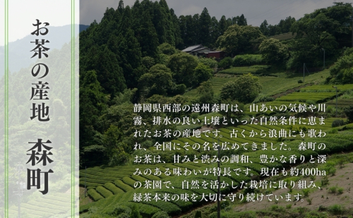 こころで京を感じるまち  遠州の小京都 森町 静岡県森町(もりまち)は、静岡県の西部、政令指定都市・浜松市のすぐ隣にあります。人口は約1万8千人で、健康寿命の長い静岡県の中でもお達者度(静岡県独自の介護を受けたり病気で寝たきりになったりせず、自立して健康に生活できる期間)が毎年上位で、元気な人が多い町です。  また、三方を小高い山々に囲まれ、町の中央を清流「太田川」が流れ、どこか京都に似た風情を感じる町でもあります。 大正12年(1923年)7月、森町を訪れた地理学者「志賀重昂(しがしげたか)」は、山紫水明のこの町を「小京都」と称賛し、以来遠州の小京都と呼ばれるようになりました。  森町には、5月の新茶、6月のとうもろこし、8月の新米、11月の次郎柿、12月のレタス、通年出荷できるクラウンメロン、歴史と伝統のある品々などなど、多くの特産品に恵まれている町です。みなさまには、そんな静岡県森町の選りすぐりのお礼の品を心を込めてお送りいたします。