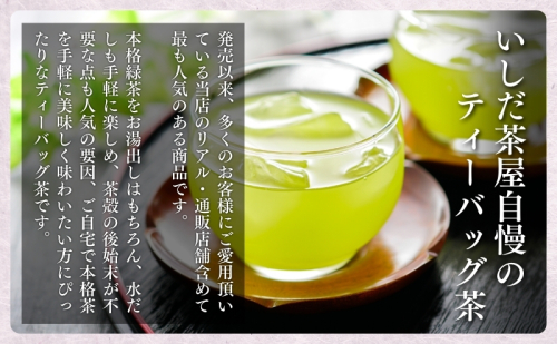 当店の特上深蒸し茶ティーバッグは、発売以来、多くのお客様にご愛用頂いている人気商品です。ティーバッグで本格的なお茶の味を楽しみたい方にぜひお勧めのお茶です。特上深蒸し粉茶を使用し、独自の火入技術で香ばしい甘みと香りを引き出して仕上げます。冷やして淹れても、熱く淹れてもおいしい手軽で便利なティーバッグをお試し下さい。