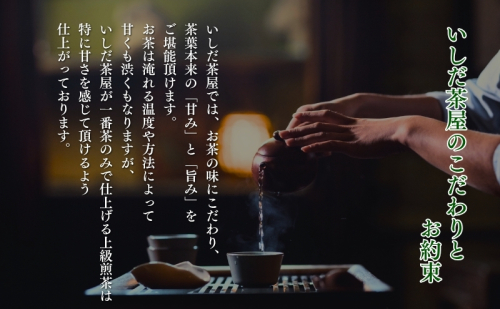 太田川の清流に育てられた森の一番茶の中から厳選して作った最も自信を持ってお届けする深蒸し茶です。 新茶出始めの四月下旬に摘まれた最も若葉の中から、さらに味の良いものだけを選んで仕上げました。爽快な若芽の香りと、濃厚な甘み、旨味が特長の当店最高級のお茶です。贈答用にはもちろんのこと、お茶好き・お茶通の方にはぜひ、お試し頂きたい一品です。