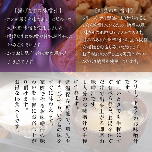 - 味噌汁 フリーズドライ 揚げなす 納豆 各15食 計30食 [タムラ 福岡県 宇美町 um40azp050000] インスタント みそ汁 味噌 みそ お味噌汁 揚げ茄子