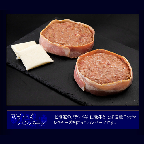 定期便6カ月 お楽しみ 白老牛 Wチーズ ハンバーグ セット 5個 モッツァレラ 特製ソース ベーコン 手造り BY089