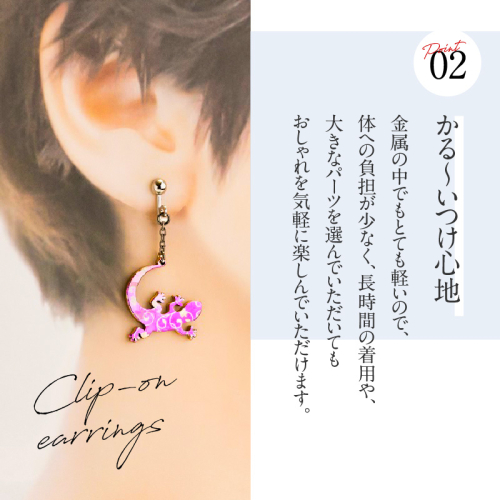 金属の中でもとても軽いので、体への負担が少なく、長時間の着用や、大きなパーツを選んでいただいてもおしゃれを気軽に楽しんでいただけます。