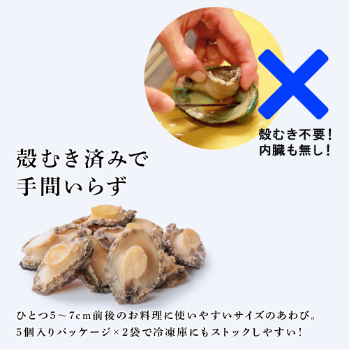 今回は食べやすくむいた、アワビとセットでお届け!どちらも冷凍なので使いたいときに使いやすい!