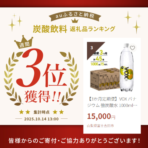 【3か月定期便】VOX バナジウム 強炭酸水 1000ml 15本(レモンフレーバー)