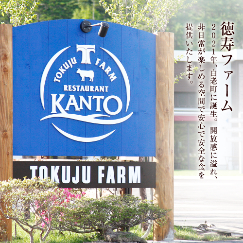 開放感に溢れ、非日常が楽しめる空間で、徳寿ファームの牧場・農園・酪農で生産された