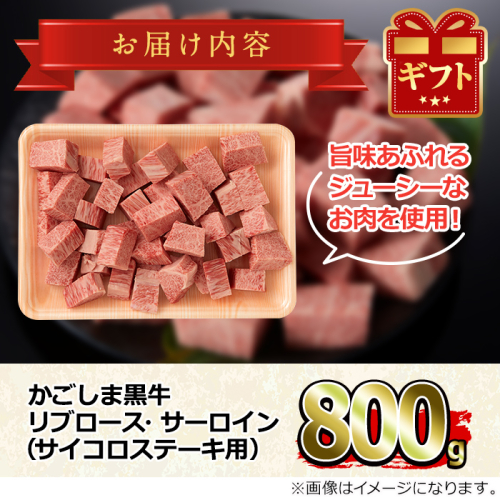 【25436】鹿児島県産黒毛和牛リブロース・サーロインサイコロステーキ(800g)国産 牛肉 肉 冷凍 リブロース サーロイン 鹿児島 焼肉 ステーキ BBQ バーベキュー【デリカフーズ】