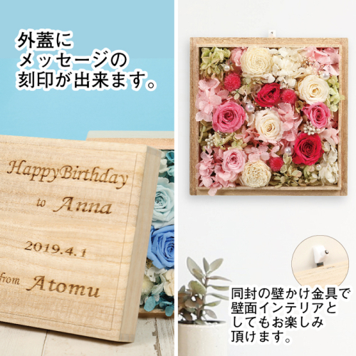【67532】《数量限定》選べる4色!プリザーブドフラワーアレンジ『Cubetart(キューブタルト)』Lサイズ(刻印可)高級感のある木製の箱で!お誕生日に結婚式のプレゼントやギフトにも【幸積】