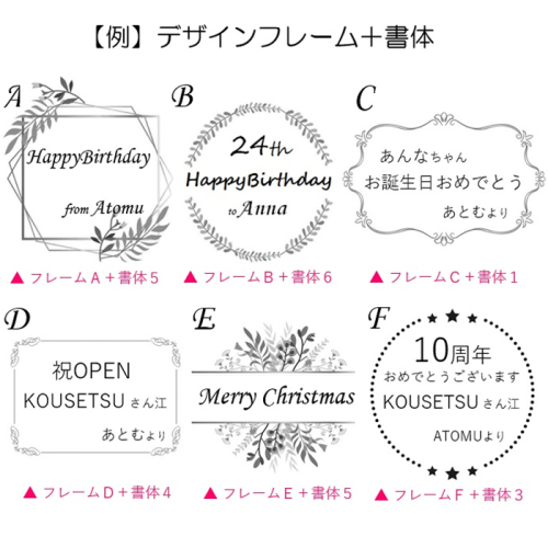・文字列:フレームあり(10文字×3行)・フレームなし(15文字×4行)