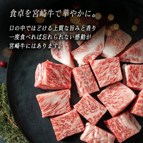 宮崎牛の柔らかく甘みのあるロース肉を、ぜいたくにもサイコロ状にカットしてお届けします。