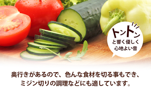 奥行きがあるので、色んな食材を切る事もでき、ミジン切りの調理などにも適しています。
