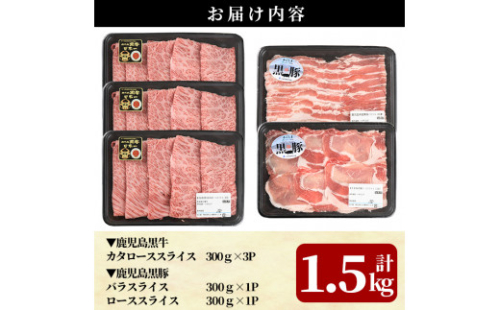D0-087 鹿児島黒牛すきやき・黒豚しゃぶしゃぶセット(計1.5kg)<E-2401>【JA】