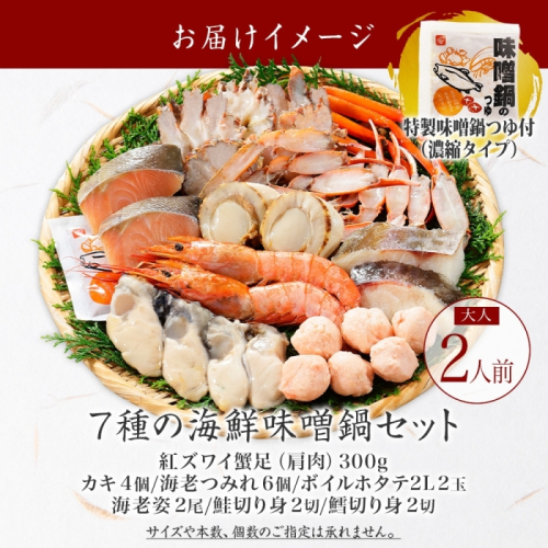 - 2514. 海鮮味噌鍋 2人前 豪華 具だくさん 7種 具沢山 カキ 牡蠣 海老 つみれ えび エビ ホタテ ほたて 帆立 鮭 シャケ しゃけ 鱈 タラ たら 蟹 かに カニ 紅ズワイ ずわいがに ズワイガニ ずわい蟹 ズワイ蟹 海鮮 味噌鍋 石狩鍋 味噌 味噌味 みそ 鍋 セット 贅沢 送料無料 北海道 弟子屈町