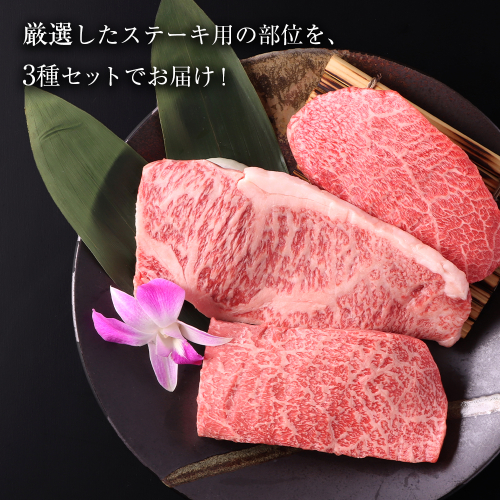 厳選したステーキ用の部位を、3種セットでお届けいたします。