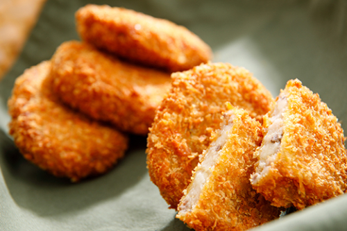 馬鈴薯(国産)、玉葱(国産)、牛肉(滋賀県)、砂糖、食塩、胡椒、パン粉、小麦粉、コンソメ(鶏エキス、乳糖、デキストリン、その他)、卵粉末、全粉乳、香辛料、酵母エキス/加工澱粉、増粘多糖類、クチナシ色素、調味料(アミノ酸等)、酢酸Na、グリシン、リン酸塩(Na)、酸化防止剤(V.C、精油除去フェンネル抽出物、V.E)