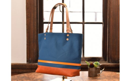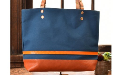 - ハンドメイド 八幡帆布鞄トートバッグ・名入れ可能 Lサイズ 琵琶湖ブルー【CC02W】