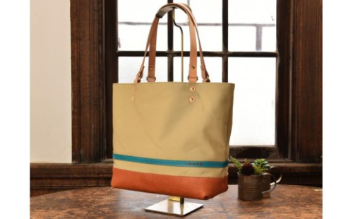 ハンドメイド 八幡帆布鞄トートバッグ・名入れ可能 Lサイズ ライトブラウン【CC03W】