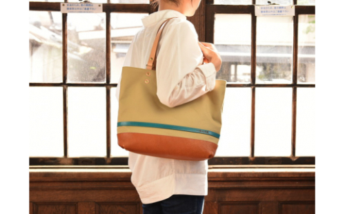 - ハンドメイド 八幡帆布鞄トートバッグ・名入れ可能 Lサイズ ライトブラウン【CC03W】