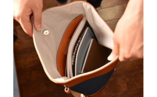 ここ近江八幡は、明治時代、県内の有志が集まり、国内初の西欧式帆布製造を完成させました。こういった歴史的なモノづくり精神にインスパイアされ、滋賀県で作られた帆布を使った八幡帆布鞄を作りました。八幡堀近くの工房で一つ一つ丁寧に鞄を手作りしております。使用している帆布は8号帆布で耐久性も高く、革も国内で作られている高級なものを使用しております。デザインは、八幡堀をイメージし、古い中にも新しさがある、レトロモダンをイメージして作っております。幅広い年齢層の方にご支持をいただき、最近は海外の旅行者様にも人気のアイテムとなっております。こちらのモデルは裏地が付いており、ポケットがひとつ付いております。バックを開ける部分はマグネットになっているので簡単に取り外しができます。こちら2WAYモデルとなっております。付属のショルダーベルトをつけていただくと、ショルダーバッグとしてもご利用いただけます。こちら標準装備されております。(通常はオプション)