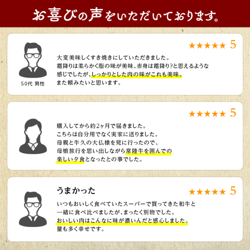 常陸牛はきれいな霜降りと良質な赤身が特徴です。肉質が柔らかく、風味と甘みがあり旨味が強いです。たっぷりと届くので食べ比べをしてみたり、色々な料理にお使いください!