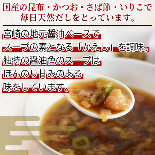 釜揚げうどんとスープを急速冷凍することにより、 無添加麺・天然だしスープの長期保存が可能となり、 店で提供する麺のコシや出汁の風味をご家庭でもお召し上がりいただけるようになりました。 ----------------------------------- 原材料名 【麺】 小麦粉(国内製造)、食塩 【つゆ】 だし(かつお節、さば節、いりこ、昆布)、醤油、味醂、砂糖、食塩/カラメル色素、調味料(アミノ酸等)、甘味料(サッカリンNa、甘草、ステビア) 【具】 ねぎ、天かす(小麦粉、植物油脂)、ベーキングパウダー 【ゆず胡椒】 ゆず、赤唐辛子、米麹 (一部に小麦・さば・大豆を含む) 保存方法 -18℃以下で冷凍保存 ギフト対応 ※のし等のギフト対応をしておりません。ご了承ください。 【地場産品に該当する理由】 高鍋町内で加工(調理)をすべて行っているため。(告示第5条第3号に該当)